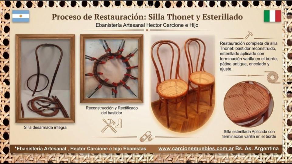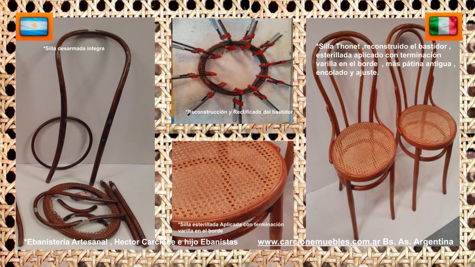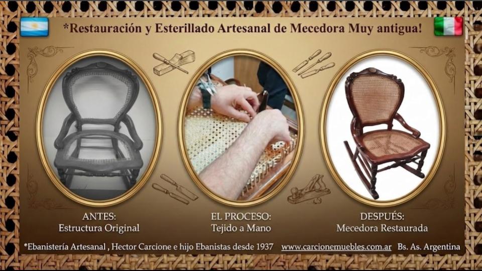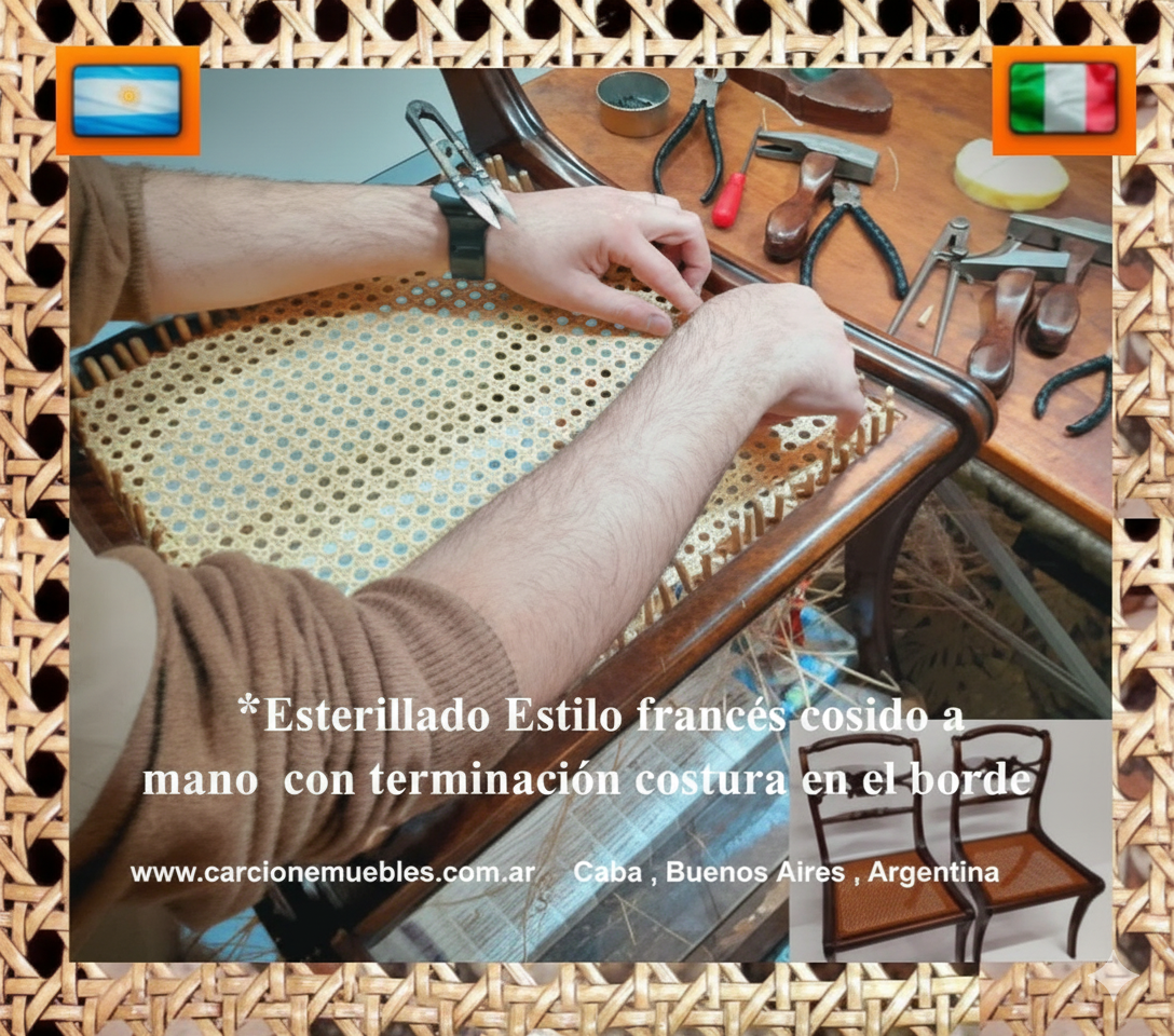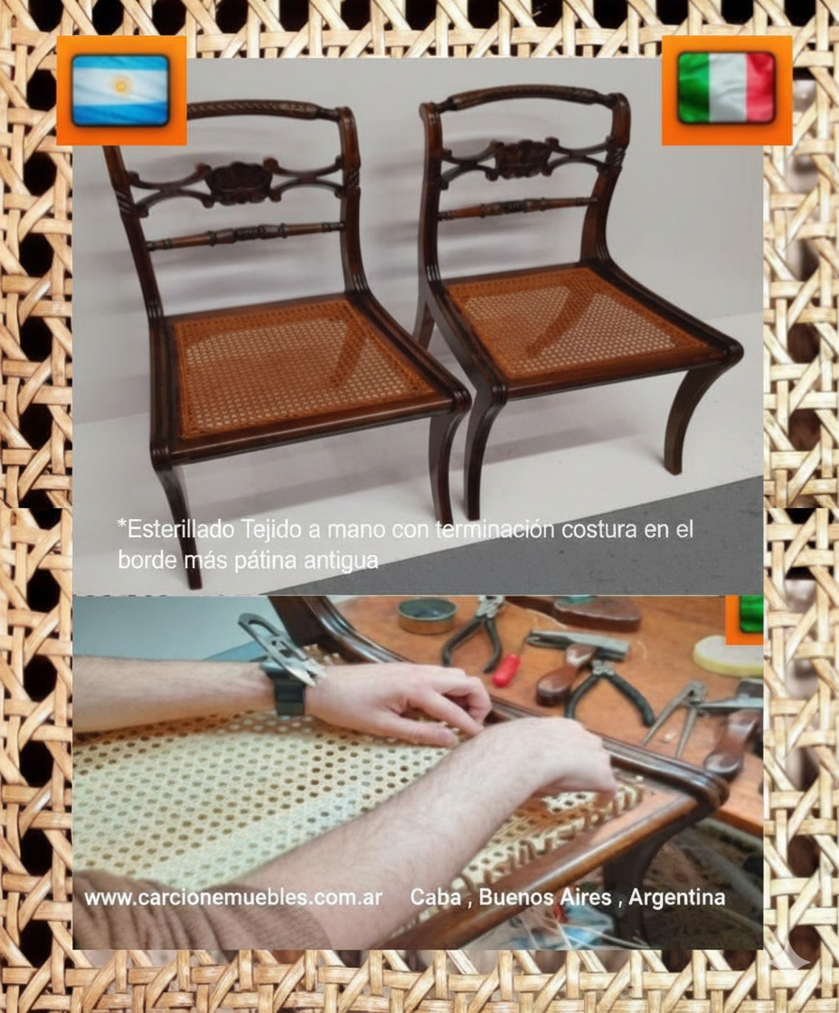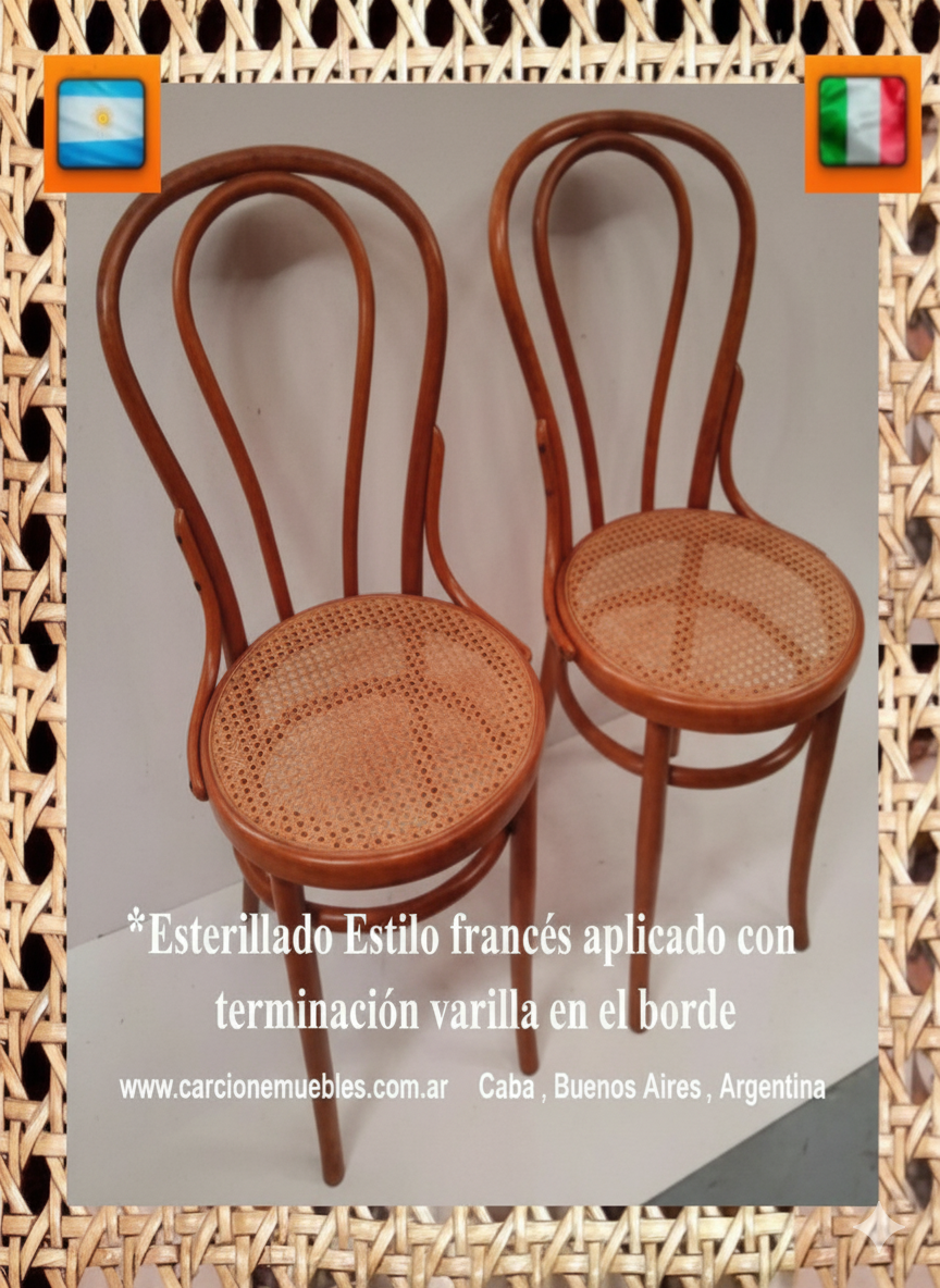 Realizamos esterillados originales .A diferencia de otras alternativas en el mercado, no utilizamos símil esterilla de mimbre (que a simple vista parece igual, pero carece del espesor y la durabilidad necesarios). Nuestro trabajo va más allá del tejido o aplicado: Primero evaluamos y reconstruimos el bastidor para asegurar que la esterilla quede perfectamente anclada y no se salga a futuro.