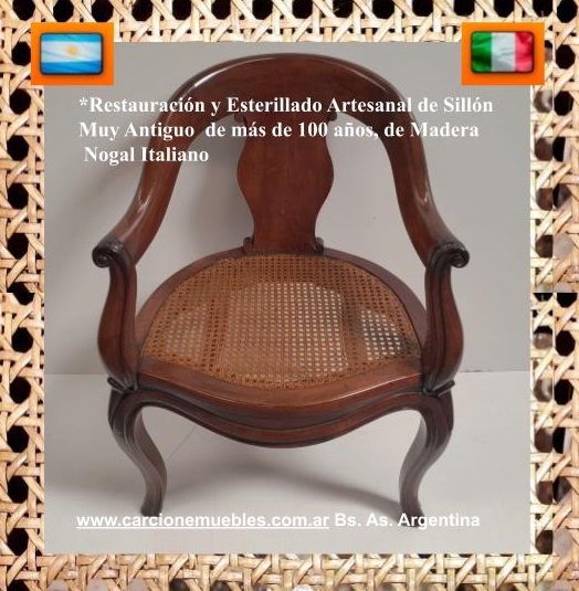 Sacale unas buenas fotos de diferentes ángulos y de abajo ,a tu silla /sillón ,que quieras Restaurar/Esterillar. (Lo que más nos interesa ver es en que estado se encuentra el bastidor de madera dónde va agarrada la esterilla)